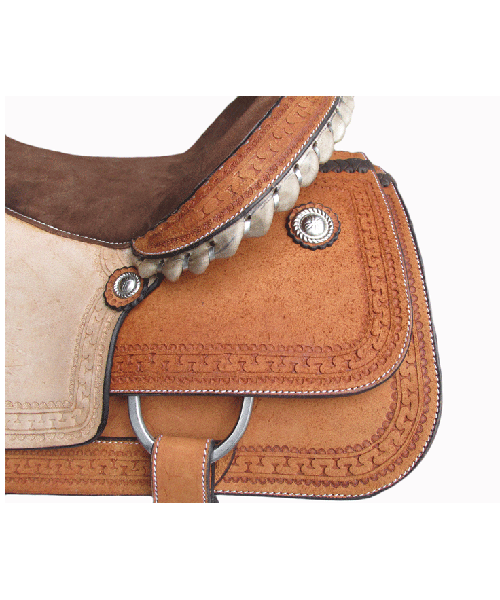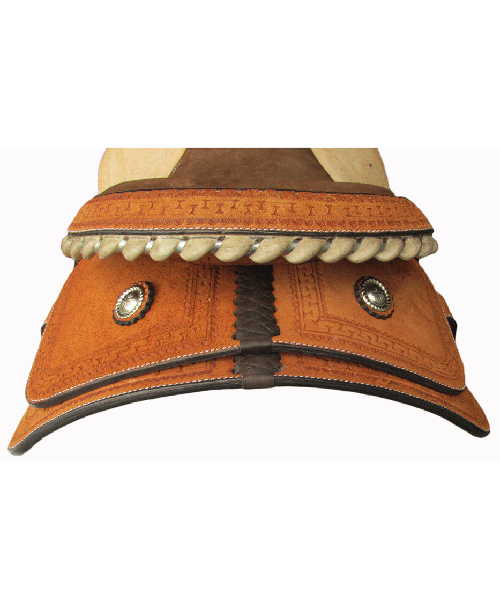 The Hawkesbury River Roper has looks and functionality. Built on an Olin Young Rawhide Tree, with extra heavy duty roper rigging. The Hawkesbury River Roper features a suede seat and rough-out oaktanned leather with snake skin pattern. The pedestal horn has rawhide detailing as does the silver twist cheyanne roll.
